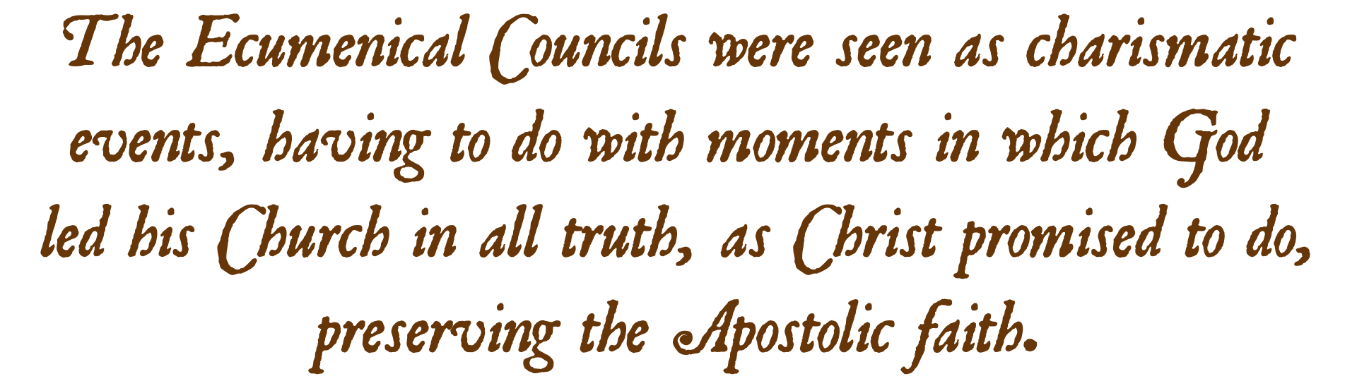 A second point concerns how the Ecumenical Councils themselves were understood. Councils were never treated as a formula for infallible judgment, as if a certain number of clergy gathered in one place yields unimpeachable truth. As Georges Florovsky points out, the Ecumenical Councils were seen as charismatic events, having to do with moments in which God led his Church in all truth, as Christ promised to do, preserving the Apostolic faith. And truth be told, looking at the history of the Councils, you can see why: Often, the colluding political and clerical powers look as if they might win the day against the Apostolic faith, only to see the faith of the fathers prove victorious by what can only be deemed a work of providence.