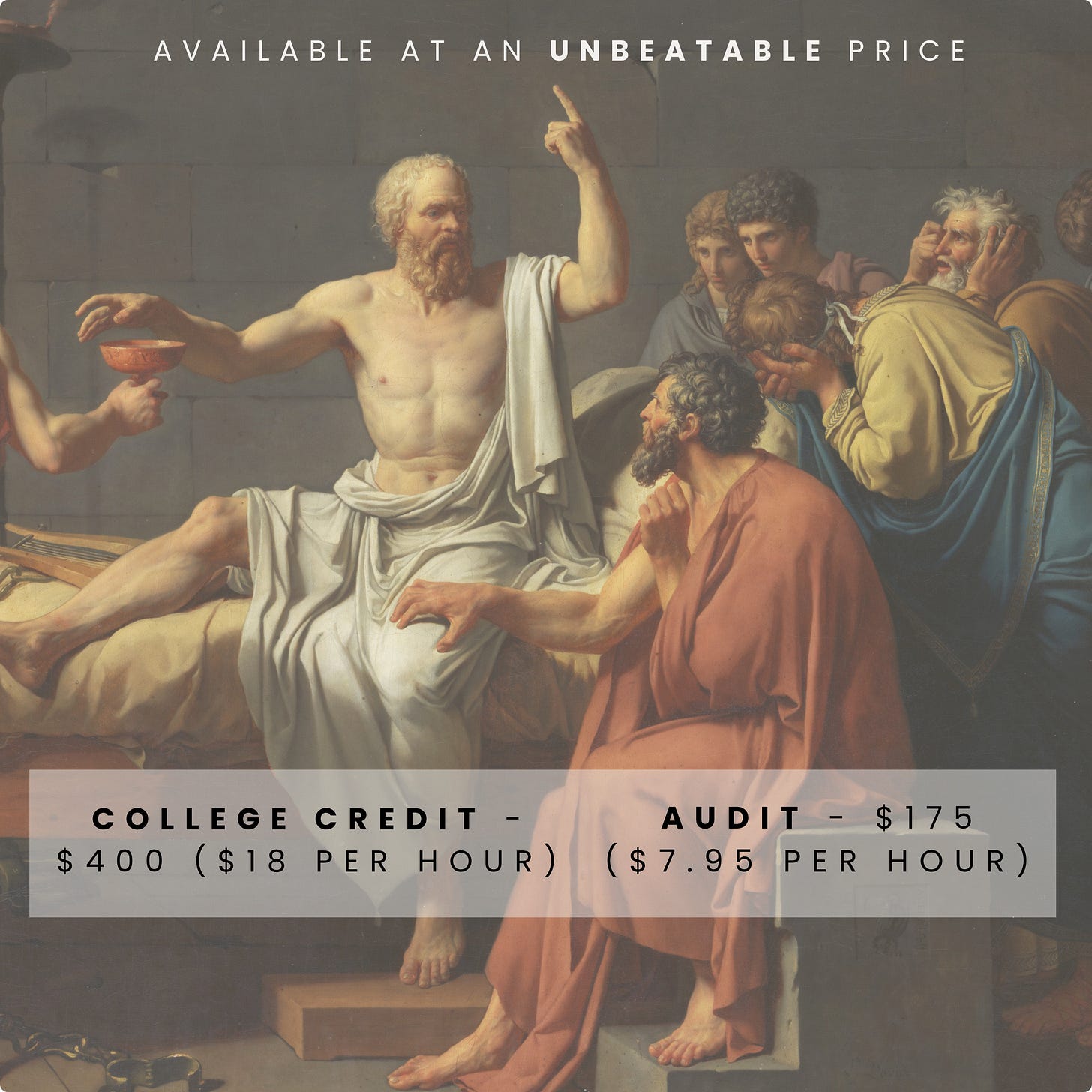 First item of business: Time is running out to sign up for my Intro to Philosophy class.